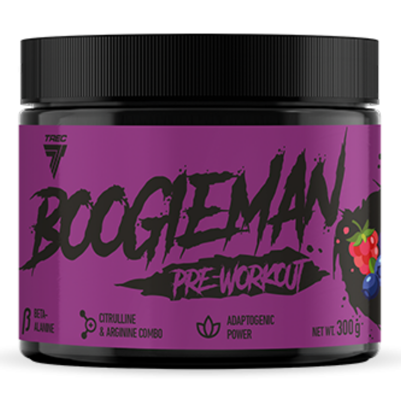 Trec Boogieman to zaawansowany przedtreningowy suplement diety w proszku, dedykowany dla osób aktywnych fizycznie, pragnących zwiększenia wydajności podczas intensywnych treningów.