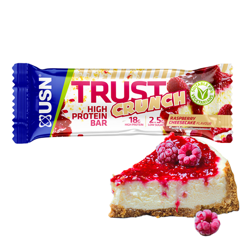 USN Crunch Trust to wysokobiałkowa przekąska w formie batona. 1 sztuka dostarcza 20g białka i zaledwie około 2g cukru. Stanowi on świetną alternatywę dla zwykłych słodyczy w momentach, kiedy najdzie nas ochotą na małą przekąskę.