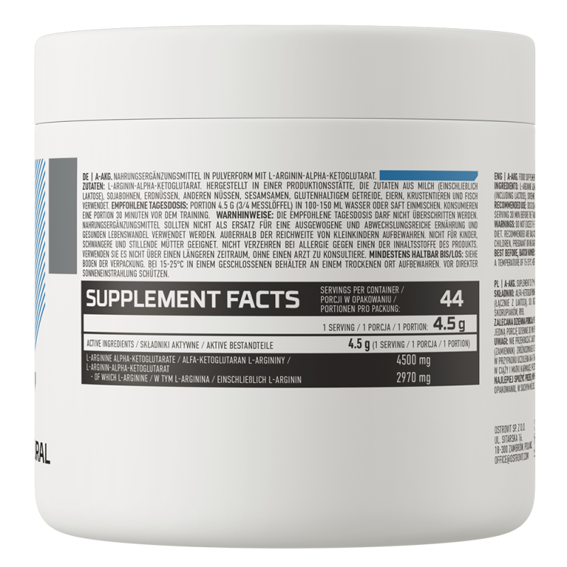Alfaketoglutaran argininy to związek chemiczny kwasu glutarowego oraz argininy. Kwas glutarowy to produkt cyklu kwasu cytrynowego, końcowego etapu metabolizmu wszystkich organizmów oddychających za pomocą tlenu, często nazywany cyklem Krebsa. Arginina jest jednym z aminokwasów, który występuje w naszym organizmie, biorąc czynny udział w najważniejszych procesach życiowych. Połączenie tych dwóch molekuł, tworzy związek o działaniu synergicznym (dwa związki działają razem efektywniej, niż w pojedynkę).