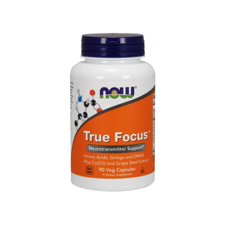 Now Foods True Focus to suplement diety zawierający prekursory neuroprzekaźników – noradrenaliny i dopaminy oraz odpowiednie kofaktory przyspieszające ich produkcję. Mediatory te są kluczowe dla utrzymania czujności, ostrości psychicznej i promujące poczucie ogólnego dobrego samopoczucia. W organizmie wytwarzane są z aminokwasów L-tyrozyny i L-fenyloalaniny. Ten proces konwersji wymaga obecności także witaminy C i B-6.
