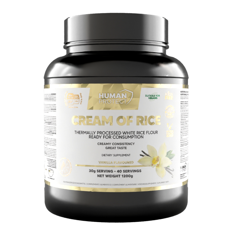 Human Protect Cream of Rice jest dobrym źródłem węglowodanów złożonych, które zapewniają długotrwałą energię. Jest również dobrym źródłem błonnika pokarmowego, który wspomaga trawienie i pomaga czuć się sytym.