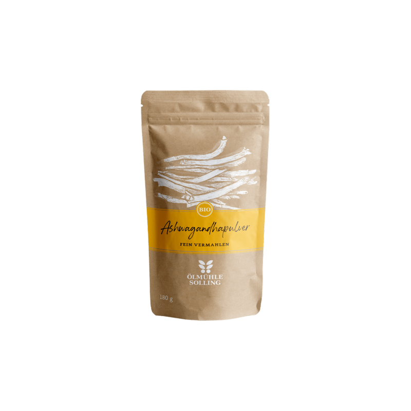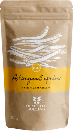 ÖLMÜHLE Bio Ashwagandha Powder ekologiczny proszek pozyskiwany jest z delikatnie wysuszonych korzeni, przypominającej krzew, rośliny Ashwagandha. Roślina ta, znana również jako witania ospała, wiśnia zimowa lub żeń-szeń indyjski stosowana jest jako surowiec leczniczy już od tysięcy lat. Obecnie, staje się coraz bardziej popularna również u nas, ze względu na jej wszechstronne zastosowanie i działanie. Szczególnie ceniona w medycynie ajurwedyjskiej, jako naturalny środek na zaburzenia snu i stres.