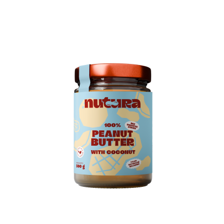 Masło orzechowe Nutura z dodatkiem wiórków kokosowych przygotowane zostało z przeznaczeniem dla osób prowadzących zdrowy styl życia, stosujących dietę opartą na naturalnych produktach. Dodatek kokosa nadaje naszemu masłu wyjątkowy smak i aromat. Olej z kokosa zawarty w jego miąższu zmniejsza poziom cholesterolu we krwi, a także ryzyko chorób serca, wpływa na lepsze funkcjonowanie mózgu oraz pomaga w spalaniu tkanki tłuszczowej. Nasz produkt nie zawiera cukru, soli oraz oleju palmowego. Masło doskonale smakuje samo, ale także wzbogaca smak deserów. Zawarte w nim składniki odżywcze, witaminy, nienasycone kwasy tłuszczowe, błonnik oraz duża ilość białka są idealnym uzupełnieniem zdrowej, zbilansowanej diety
