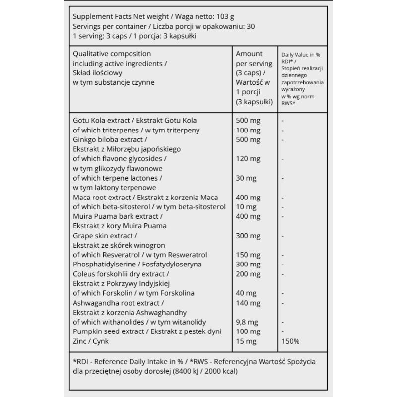• zwiększa aktywność składników wspierających koncentrację i jasność umysłu