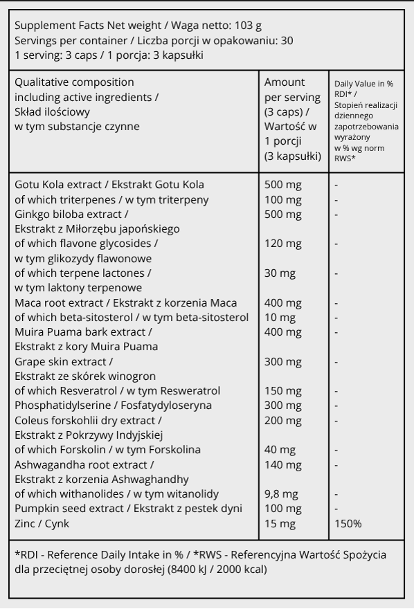 • wspiera naturalną równowagę hormonalną u mężczyzn – zwłaszcza w kontekstach zwiększonego zapotrzebowania