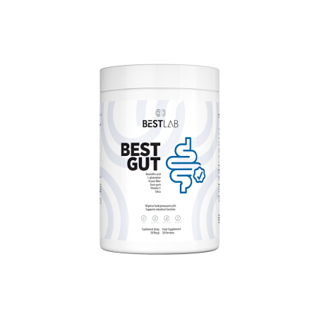 BestLab BestGut 300 g to kompleksowa formuła wspierająca jelita i komfort trawienny — z prebiotykami, L-glutaminą i ekstraktami z roślin takich jak rokitnik i kadzidłowiec. Idealny wybór dla osób szukających suplementu dla jelit, odbudowy nabłonka i utrzymania zdrowej mikroflory.