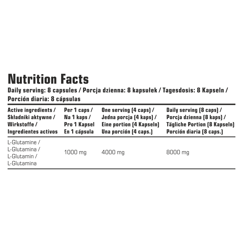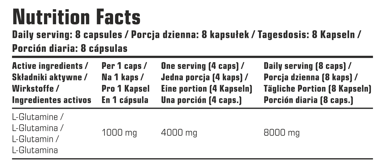 Skład: L-glutamina; kapsułka celulozowa (HPMC). |