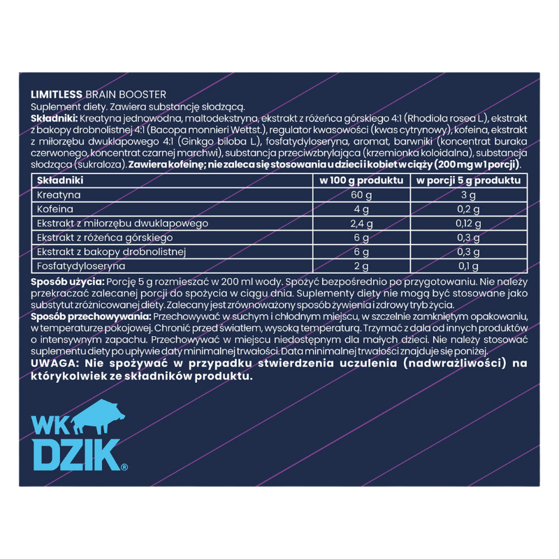DZIK Limitless 100g BrainBooster Wsparcie Mózgu Nootropik