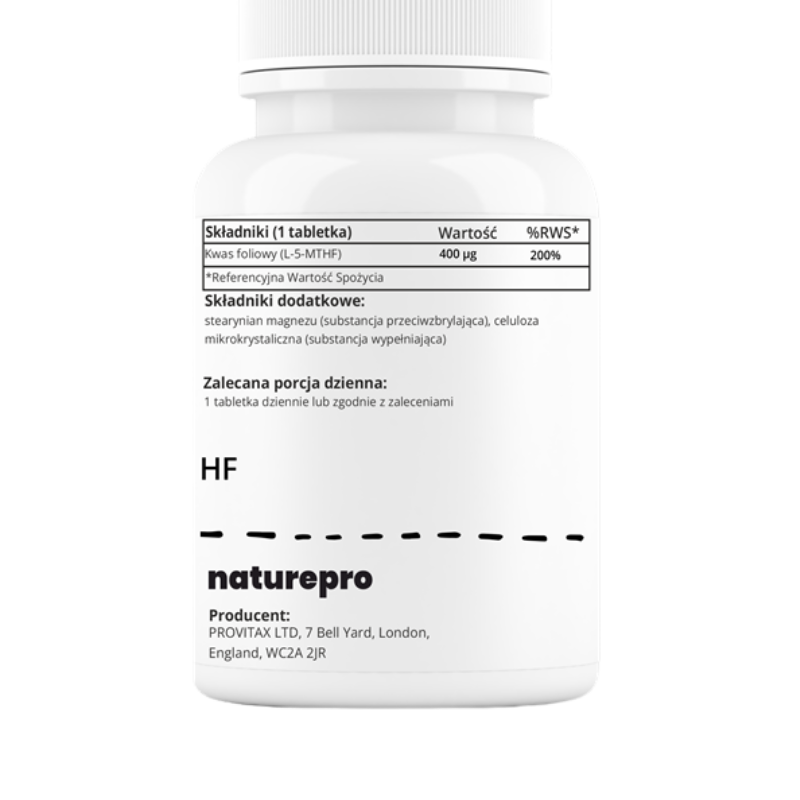 | Kwas foliowy (L-5-MTHF) | 400 μg |