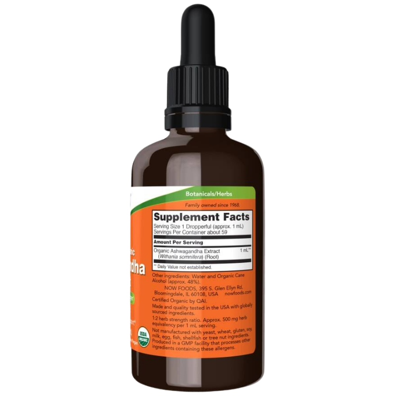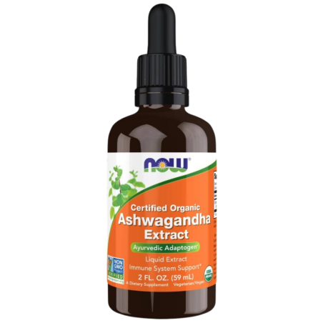 NOW Foods Ashwagandha Extract Liquid to wysokiej jakości, organiczny ekstrakt z korzenia ashwagandhy (Withania somnifera) w wygodnej formie kropel. Produkt został opracowany dla osób, które chcą uzupełnić dietę o naturalny adaptogen – substancję pomagającą organizmowi lepiej radzić sobie ze stresem i obciążeniami dnia codziennego.