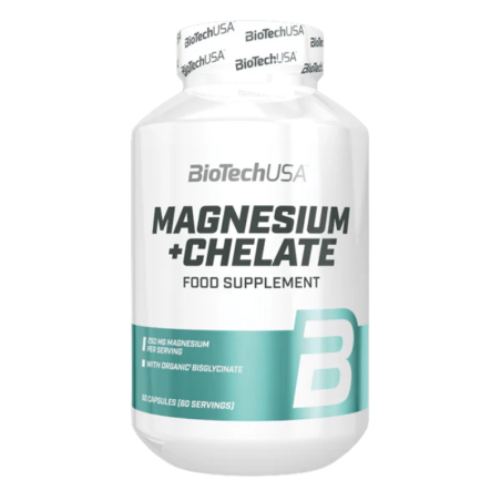 BioTech Magnesium Chelate to suplement diety z magnezem w formie chelatu, który wspiera prawidłowe funkcje mięśni, układu nerwowego i metabolizm energetyczny — idealny dla osób aktywnych i dbających o równowagę mikroelementów.