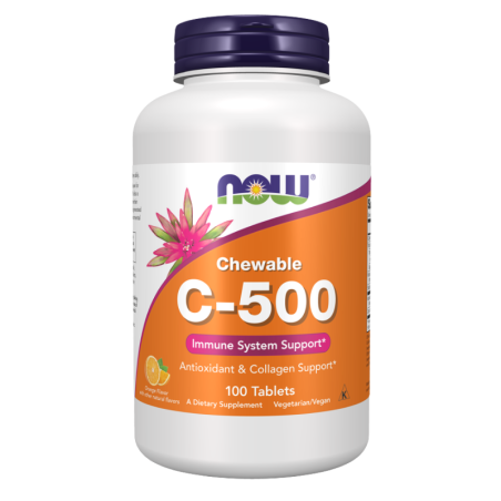 NOW Foods Witamina C-500 do ssania to suplement diety zawierający wysoką dawkę 500 mg witaminy C w każdej tabletce, który wspiera naturalne procesy odpornościowe i funkcje antyoksydacyjne organizmu.