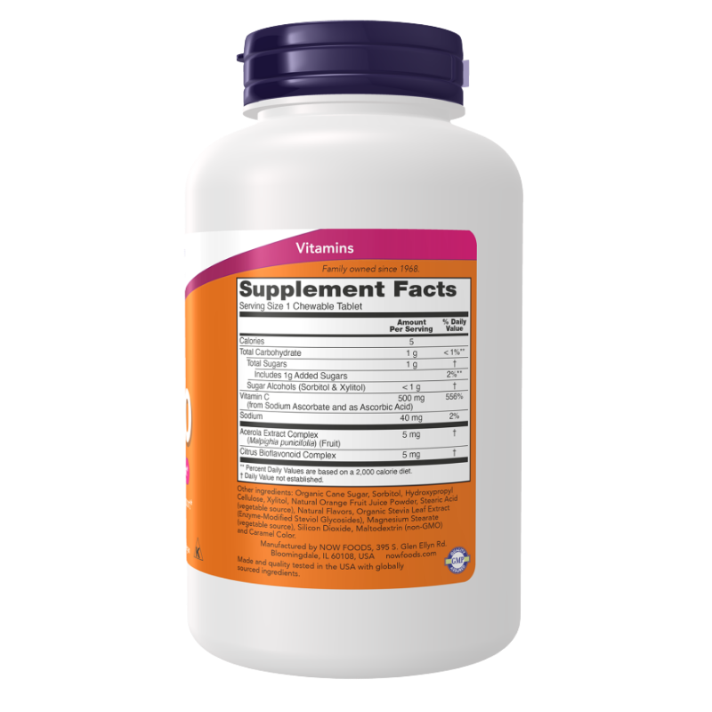 NOW Chewable C-500 100tab. Tabletki do żucia pomarańczowe Witamina C