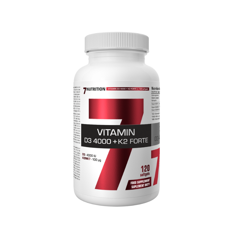 7Nutrition Vitamin D3 4000 K2 Forte to suplement diety łączący witaminę D3 w wysokiej dawce (4000 IU) z aktywną formą witaminy K2 MK-7, który wspiera prawidłowy metabolizm wapnia, zdrowie kości i funkcje odpornościowe organizmu.