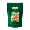 Płatki owsiane, Płatki żytnie, Płatki kukurydziane (kaszka kukurydziana, cukier, sól, ekstrakt słodowy z jęczmienia, regulator kwasowości: fosforany sodu), Żurawina suszona (żurawina, cukier, olej słonecznikowy), Rodzynki Thompson (rodzynki, olej roślinny).