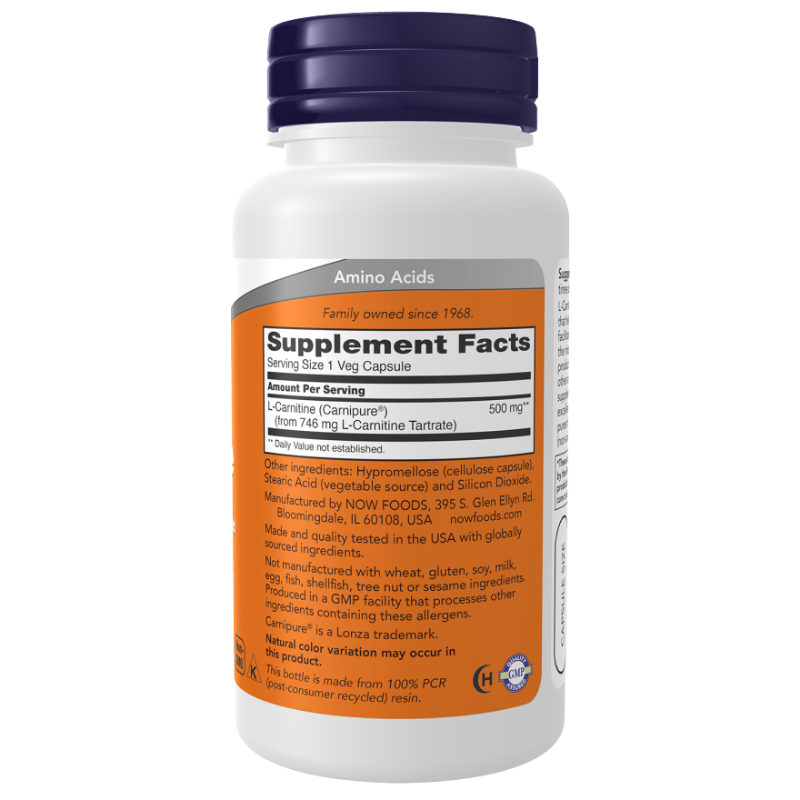 NOW L-Carnitine 500mg - 60vcaps. L-karnityna