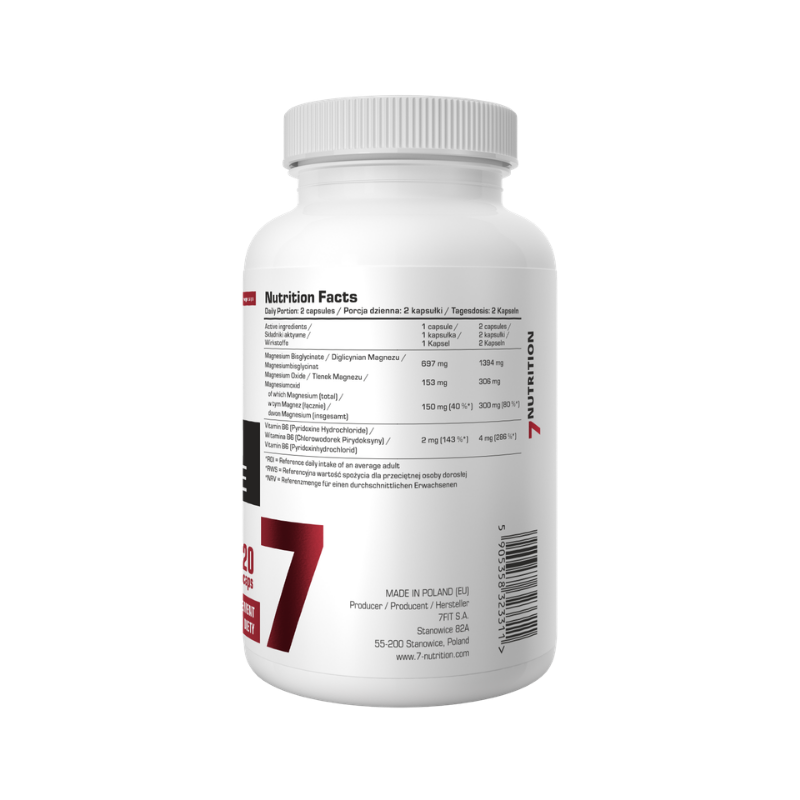 7Nutrition Magnesium Bisglycinate dostarcza glicynian magnezu – chelatowaną formę magnezu, w kapsułkach wegańskich, co ułatwia jego włączenie do codziennej rutyny. Chelat magnezu może sprzyjać lepszej przyswajalności i komfortowi trawiennemu w porównaniu z innymi postaciami magnezu, co wspiera naturalne mechanizmy relaksacji mięśni i funkcjonowania układu nerwowego. Regularne uzupełnianie magnezu w diecie pomaga wspierać te procesy.
