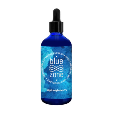 Skład: 99% woda osmotyczna, 1% błękit metylenowy klasy farmaceutycznej (Ph. Eur.) o czystości 99,99999% |