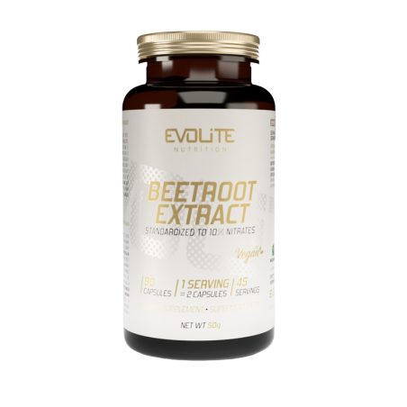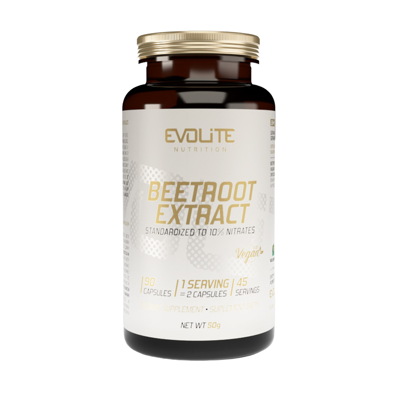 Evolite Beetroot Extract to suplement diety zawierający ekstrakt z buraka standaryzowany na azotany, którego działanie koncentruje się na wspieraniu wydolności fizycznej, przepływu krwi oraz efektu tzw. „pompy mięśniowej”. Skoncentrowana forma kapsułek pozwala wygodnie dostarczyć aktywne związki bez potrzeby picia soku z buraka.