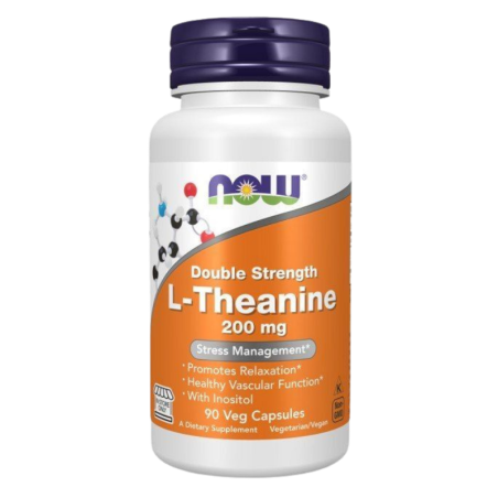 NOW L-Theanine 200mg - 90vcaps. Stres Lepszy Sen