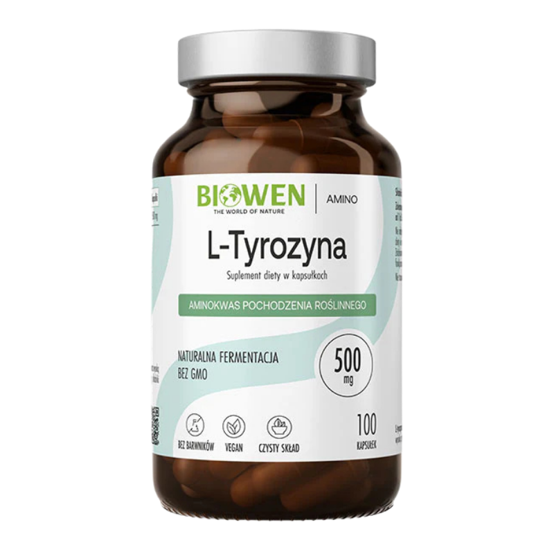 Biowen L-Tyrozyna to suplement diety dostarczający 500 mg L-tyrozyny w jednej kapsułce, pozyskiwanej w procesie naturalnej fermentacji roślinnej. L-tyrozyna jest aminokwasem endogennym, który organizm może syntetyzować z fenyloalaniny, jednak w okresach zwiększonego zapotrzebowania jej podaż z diety może być niewystarczająca. Produkt został stworzony z myślą o osobach aktywnych, ceniących prosty skład i wysoką jakość suplementacji. Wegańska forma kapsułek oraz brak zbędnych dodatków dobrze wpisują się w różne modele żywienia.