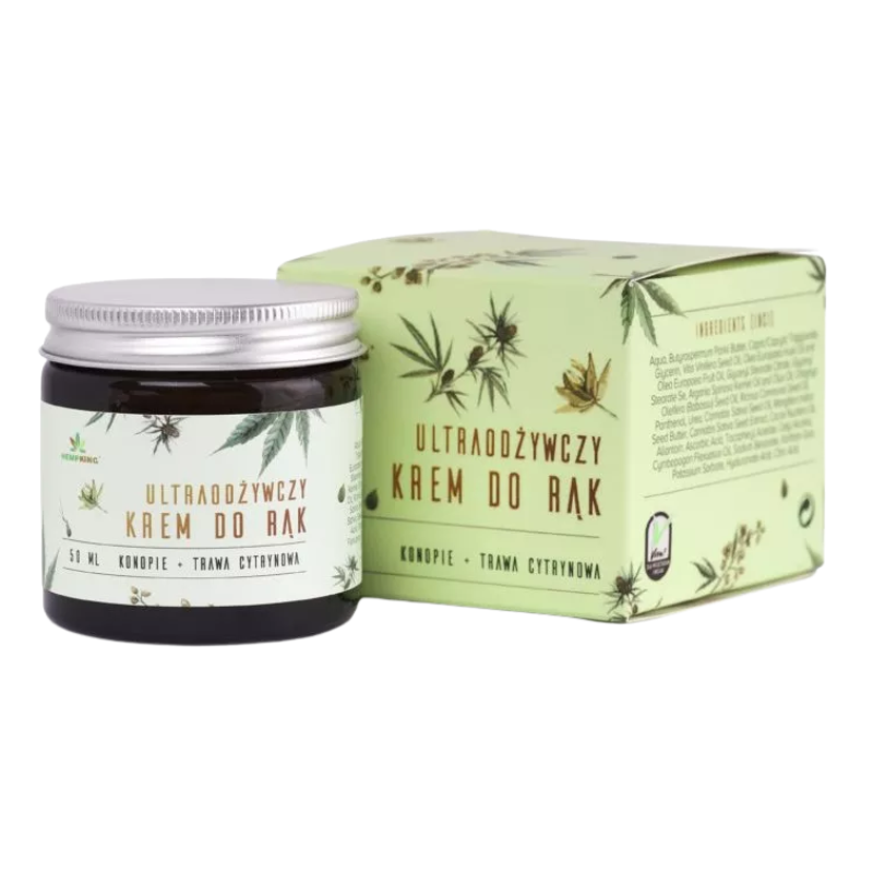 Naturalny krem do rąk z CBD i trawą cytrynową – intensywne nawilżenie, regeneracja i ochrona skóry dłoni. Lekka formuła szybko się wchłania i pozostawia dłonie miękkie oraz gładkie.