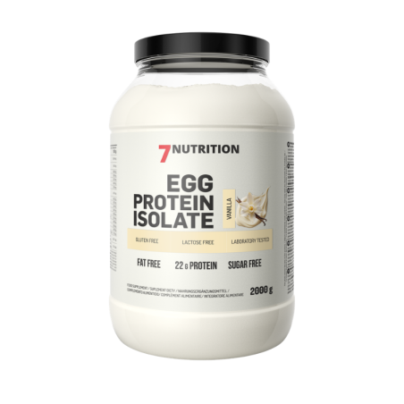 7Nutrition Egg Protein Isolate to suplement diety zawierający izolat białka jaj o bardzo wysokiej wartości biologicznej (BV 100), uznawany za jeden z najlepszych wzorców białka. Produkt dostarcza ok. 22 g białka w porcji i charakteryzuje się bardzo dobrą przyswajalnością. Nie zawiera laktozy ani tłuszczu, dzięki czemu stanowi świetną alternatywę dla klasycznych odżywek serwatkowych. Regularne stosowanie może wspierać budowę masy mięśniowej, regenerację oraz uzupełnienie białka w diecie.
